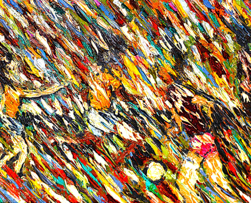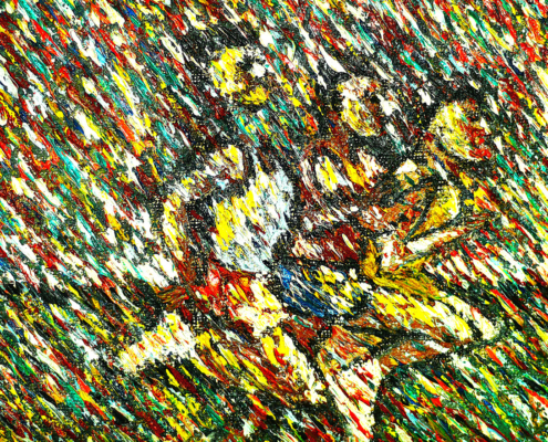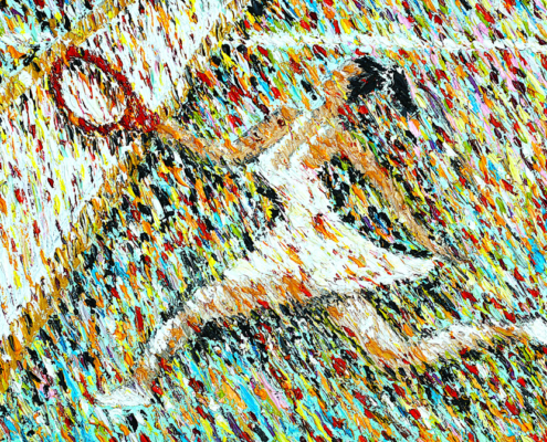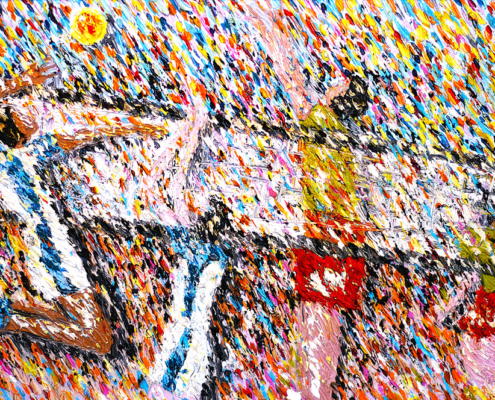 Constatant que cela me rapportait plutôt bien, j’ai continué et développé progressivement mon propre style, inspiré du pointillisme, avec une touche rappelant Van Gogh, un artiste que j’apprécie particulièrement.