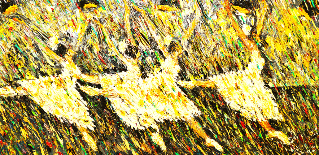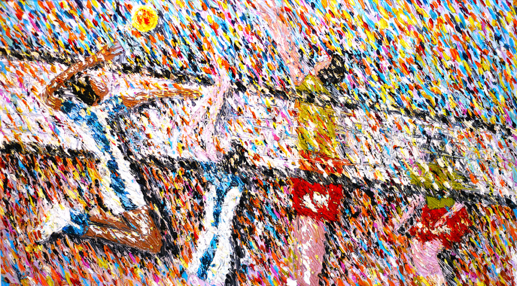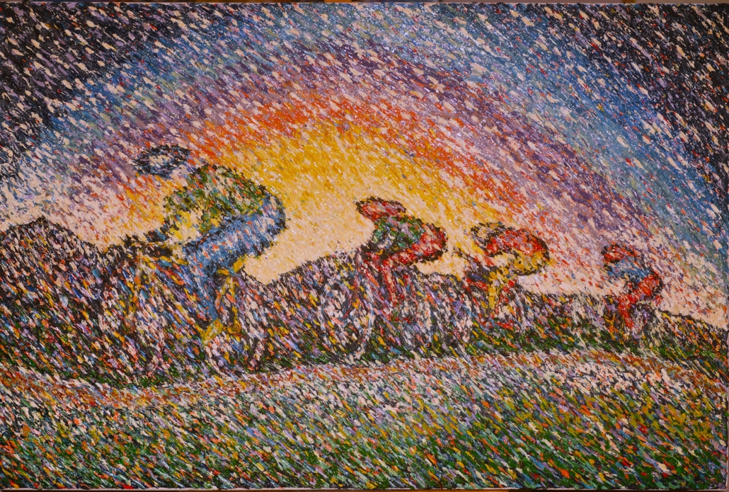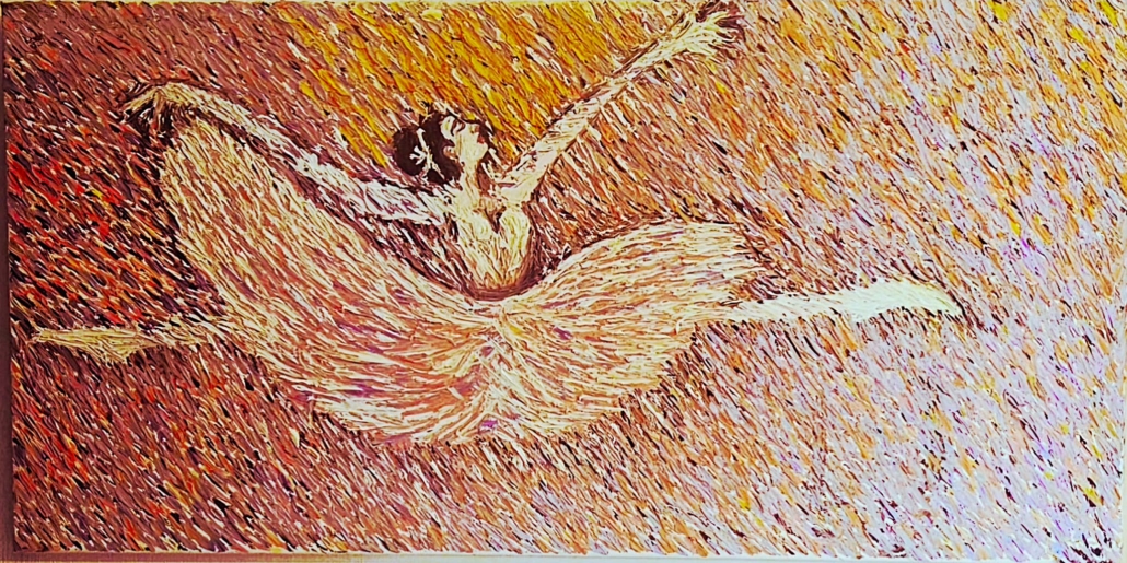 Constatant que cela me rapportait plutôt bien, j’ai continué et développé progressivement mon propre style, inspiré du pointillisme, avec une touche rappelant Van Gogh, un artiste que j’apprécie particulièrement.