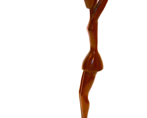 Vers 17h00, inspiré et impatient, je suis parti chercher du bois dans une construction. Je suis rentré chez moi vers 19h00 et j’ai commencé à sculpter. J’ai travaillé toute la nuit sans relâche, jusqu’à 8h00 du matin, lorsque ma première sculpture fut achevée. C’est celle que vous voyez en haut de la page, malheureusement volée à l’aéroport de São Paulo en 2006.